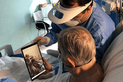 Uno de los enfermeros registra con su cámara la crisis del proceso consuntivo que los pacientes viven al final de sus vidas por el covid-19 en un hospital y los conecta con sus familiares, a fin de que puedan despedirse.